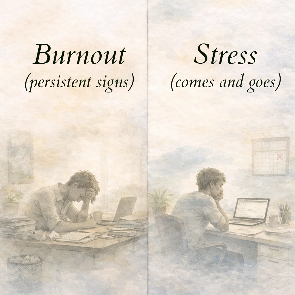 Usually, stress comes and goes each day or week. When stress stays for weeks or months on-end and strange things start to happen to how you feel, it’s a sign that’s not “normal” stress anymore.